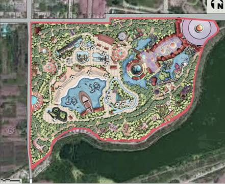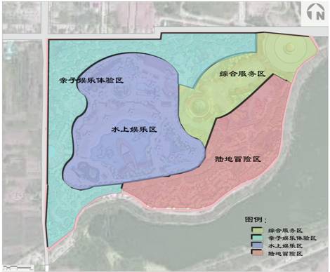 2.3功能分區(qū):根據(jù)項(xiàng)目地的場(chǎng)地情況、開(kāi)發(fā)現(xiàn)狀、發(fā)展思路等,確定功能分區(qū)為:綜合服務(wù)區(qū)——仙聚蓬萊、親子娛樂(lè)體驗(yàn)區(qū)——八寶樂(lè)園、水上娛樂(lè)區(qū)——八仙戲水、陸地冒險(xiǎn)區(qū)——龍宮歷險(xiǎn)。