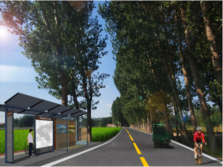 農村公交站點設置:設置間距為1km,如與村口、道口可考慮實時縮短或增加距離 ;車站滿足候車功能同時可融合互聯網+的相關服務信息,例如二維碼查詢車次運營情況及篩選去周邊區域車次。